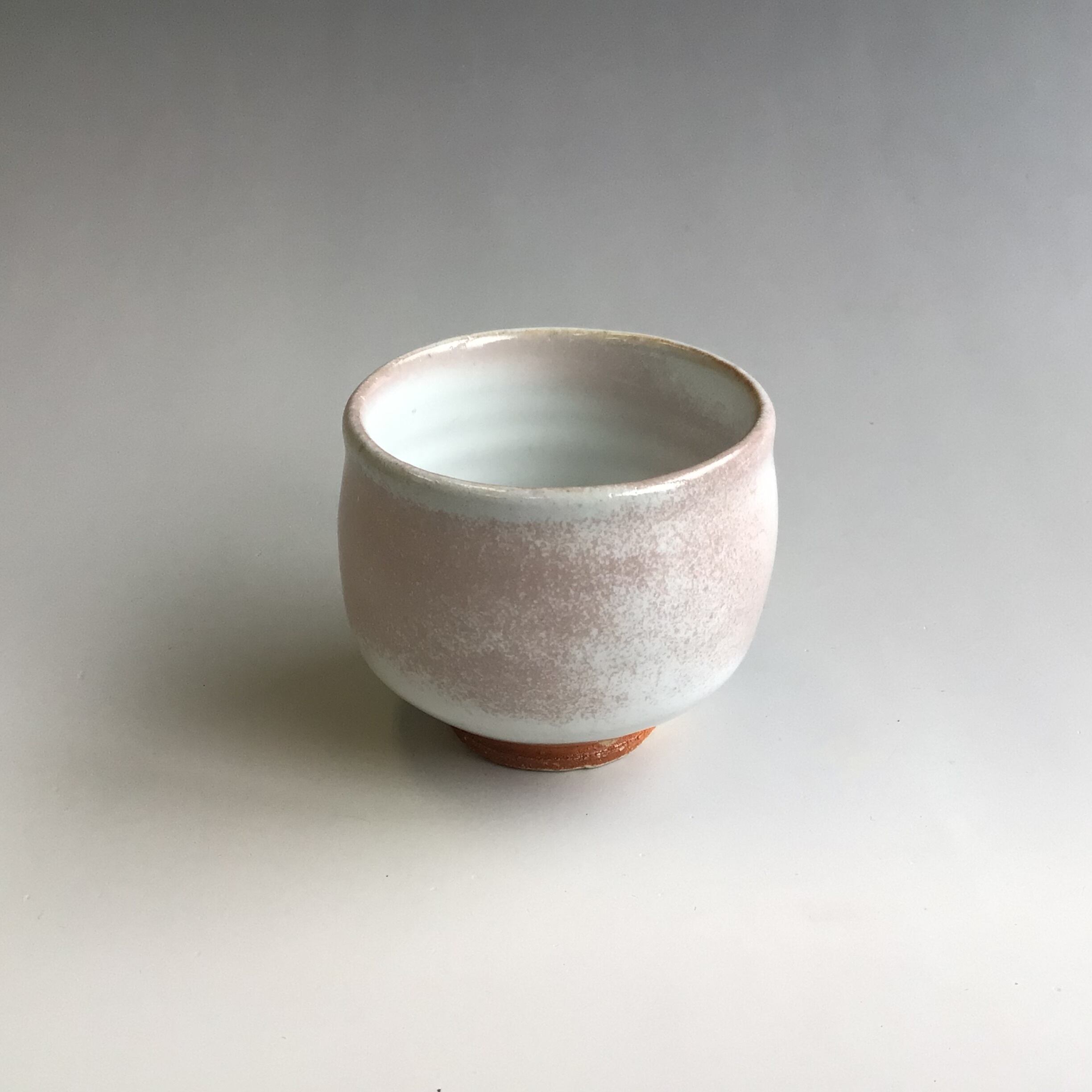 薄ピンク色の窯変のグラデーション、柔らかい形が美しい1点物です。薪窯焼成にて生まれる萩焼独特の綺麗な色合いの窯変は、まさに登り窯の証。薪の炎で作られるぐい呑は、日常のひとときを贅沢に演出します。口当たりも滑らかで、釉薬の流れも景色としてあります。