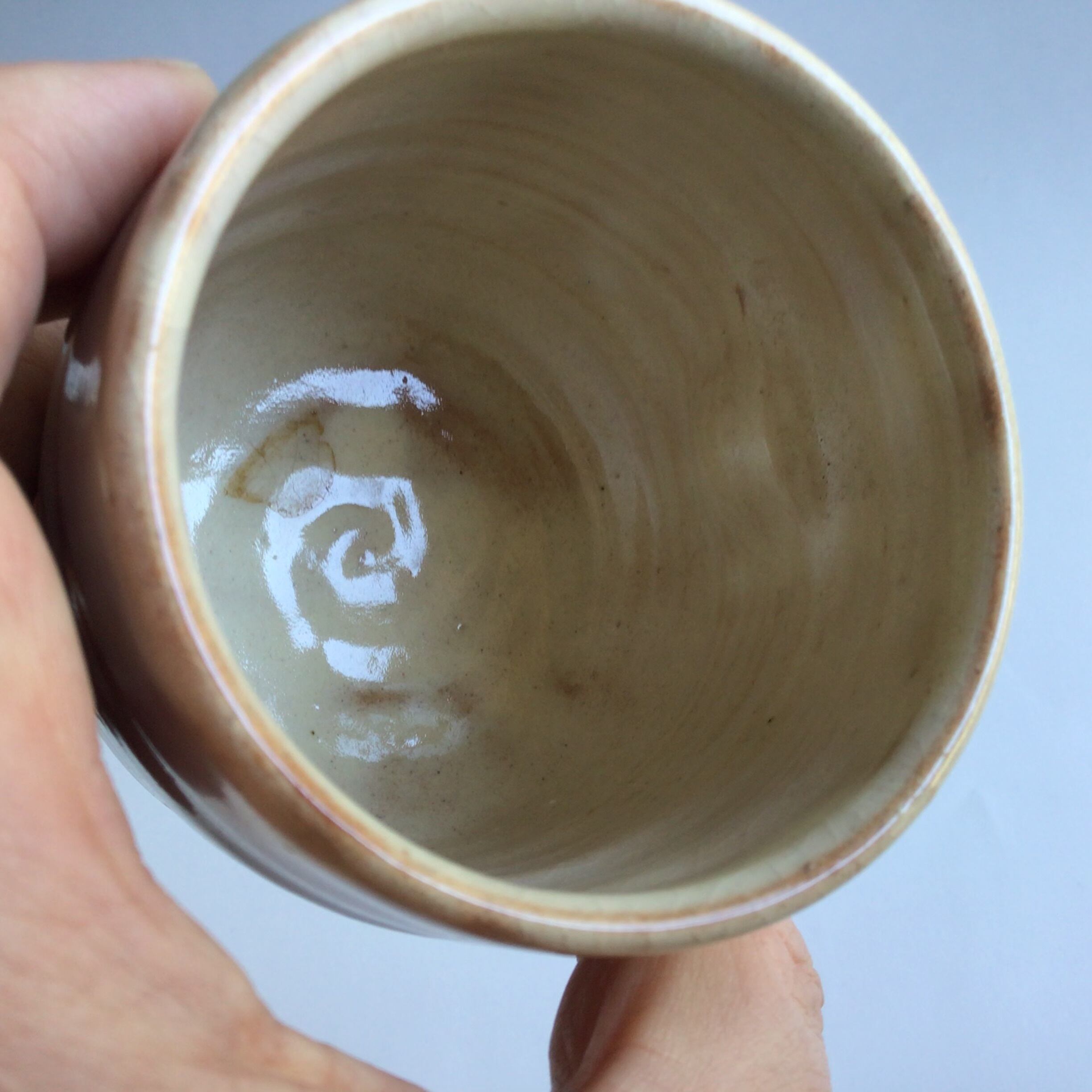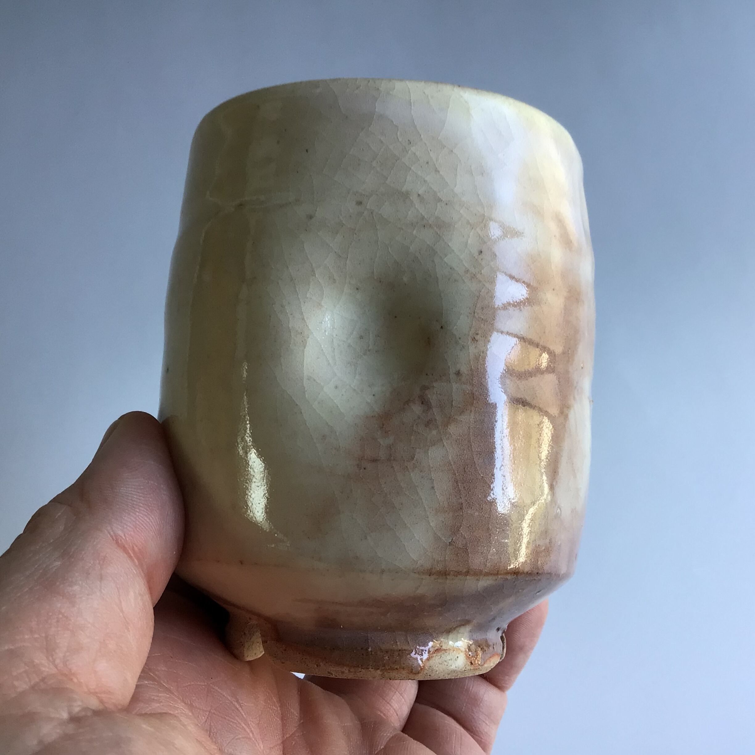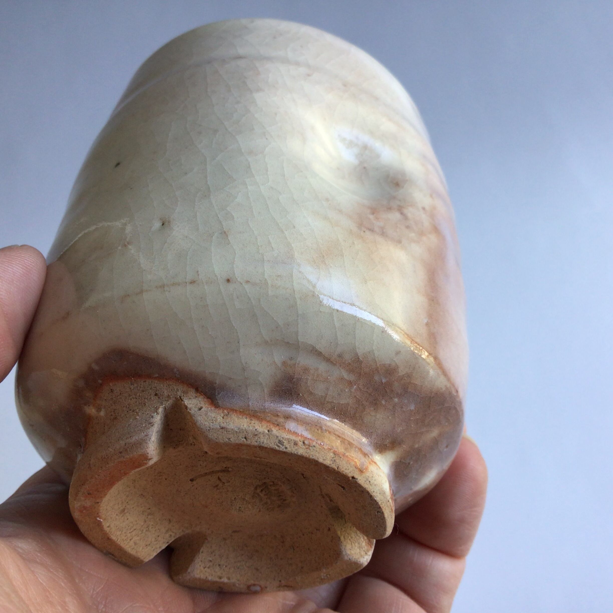 萩焼らしい風情の普段の生活に少し彩りを与えてくれる買いたい萩焼作品です。赤土と白土化粧のグラデーションが魅力的です。窪みのエクボが愛らしく手取りも良いので、毎日のお茶時間に活躍すれば幸いです。湯呑のサイズ感は大きめで容量は250㎖でたっぷりとお茶が楽しめます。ご使用になられるにつれ、お茶が器に浸透する経年変化によって萩の七化けと言う色味の変化が楽しめます。