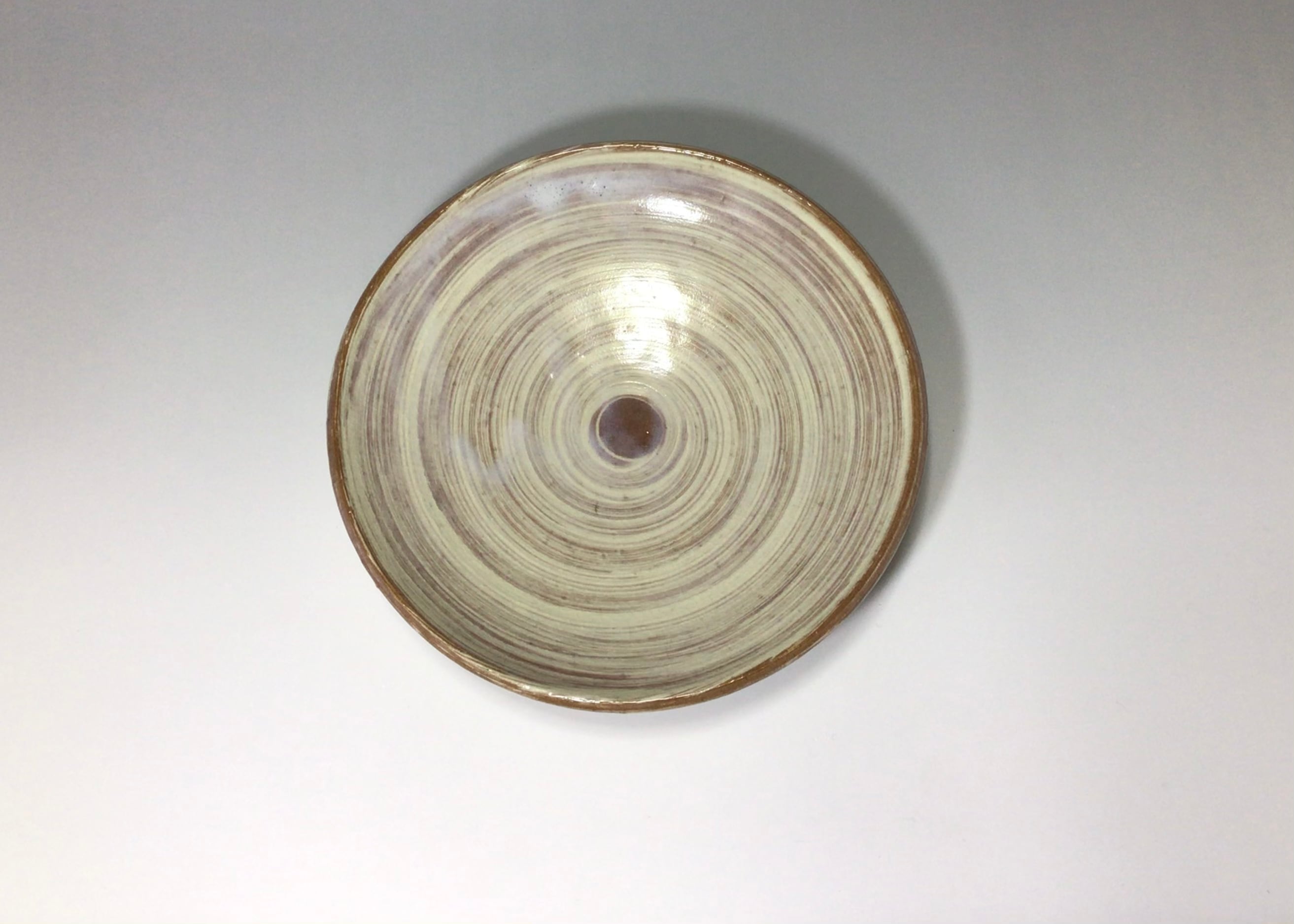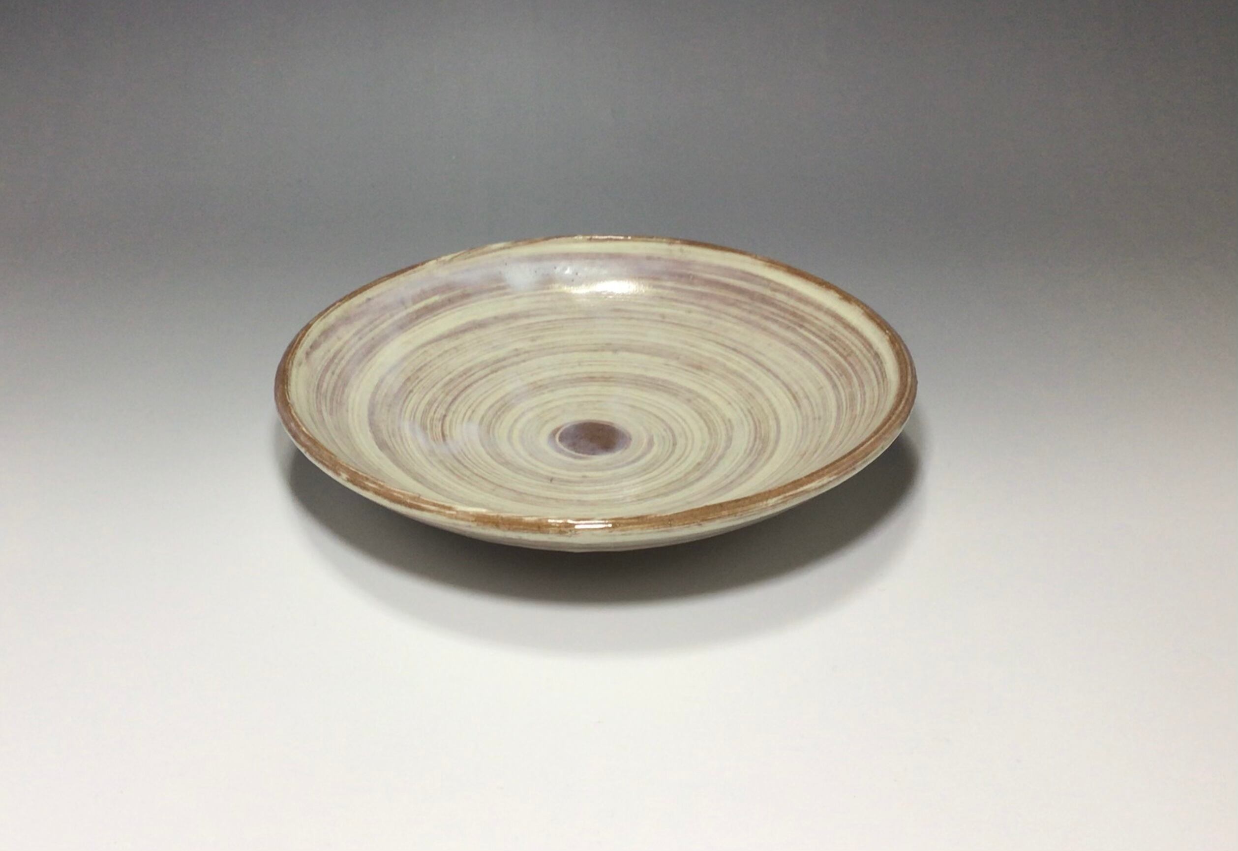 刷毛を使い白土を化粧掛け装飾したモダンな雰囲気の丸皿です。
