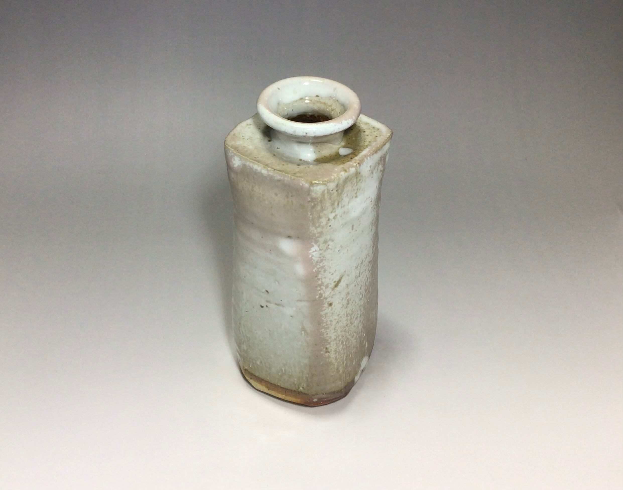 小ぶりなサイズの花入れは飾る場所を選ばずに何処にでも置いて頂くことが出来ると思います。スッキリとした形に張り肩のデザイン白萩釉の窯変が風情を醸し出し、日常生活に彩りを与えてくれる買いたい萩焼作品です。口が小さく、花の留まりも良く活けやすく花が映える花入れです。