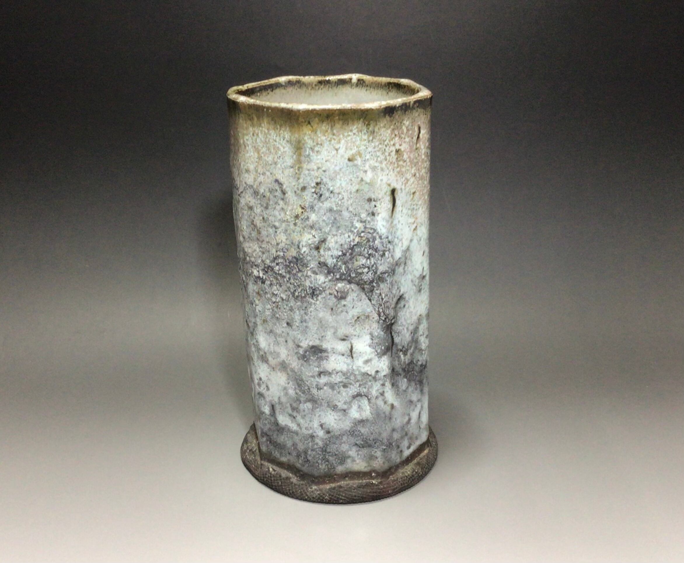 登り窯焼成で灰被りや窯変など見所の多い花入れです。八角に面取りしシャープな面を表現してます。灰被りの表情は情緒的な雰囲気で同じ表情は無い一点物で会いたい萩焼「一期一会」の作品です。花を活けても良いですし、花入れ自体の表情も力強いですので、飾って楽しんで頂いても良いかと思います。