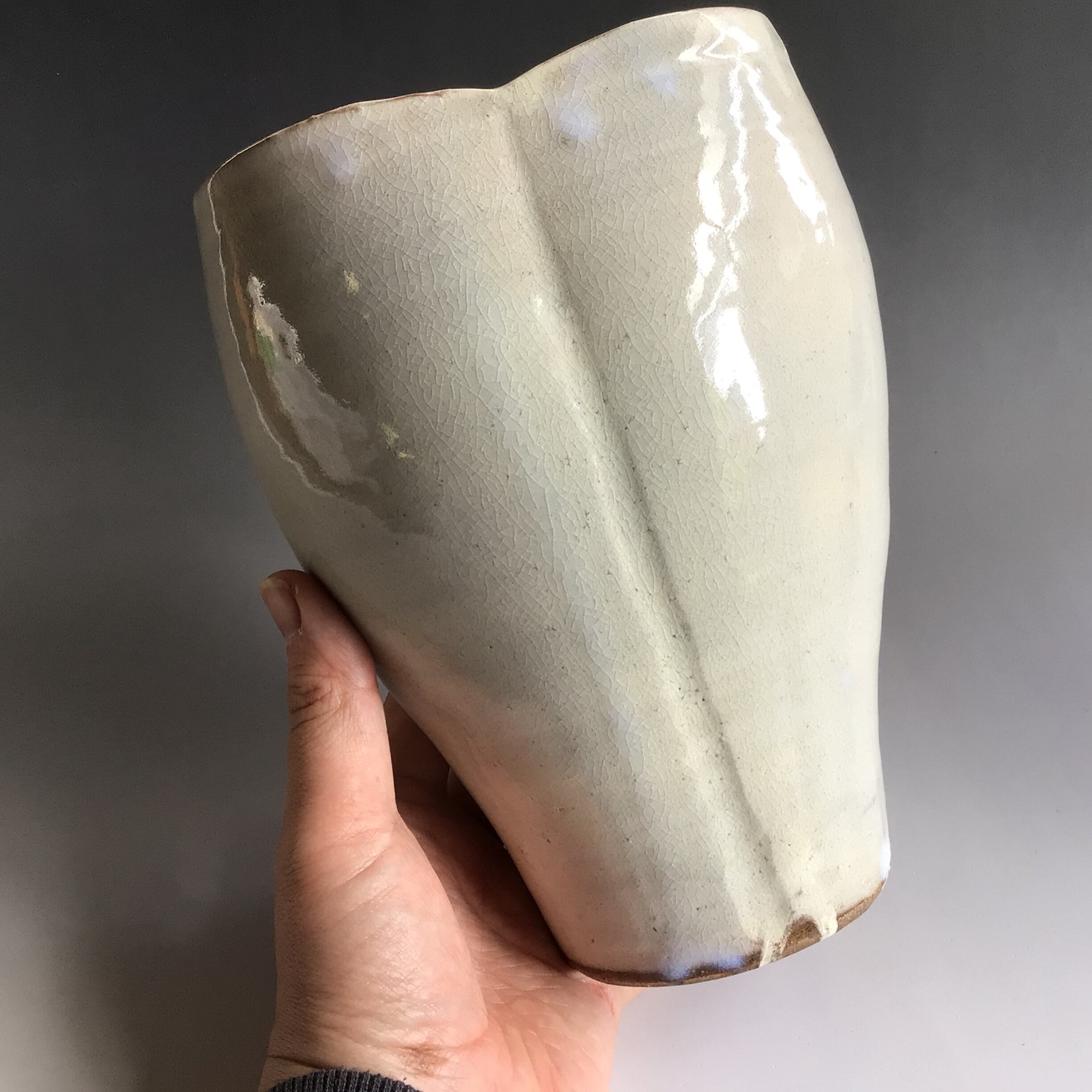 粉引き装飾と愛らしいデザインの萩焼らしい雰囲気が美しく花が映える作品です。日常に彩りを与えてくれる買いたい萩焼作品です。木箱入りもお選び頂けますので贈答品にもお使い頂けます。