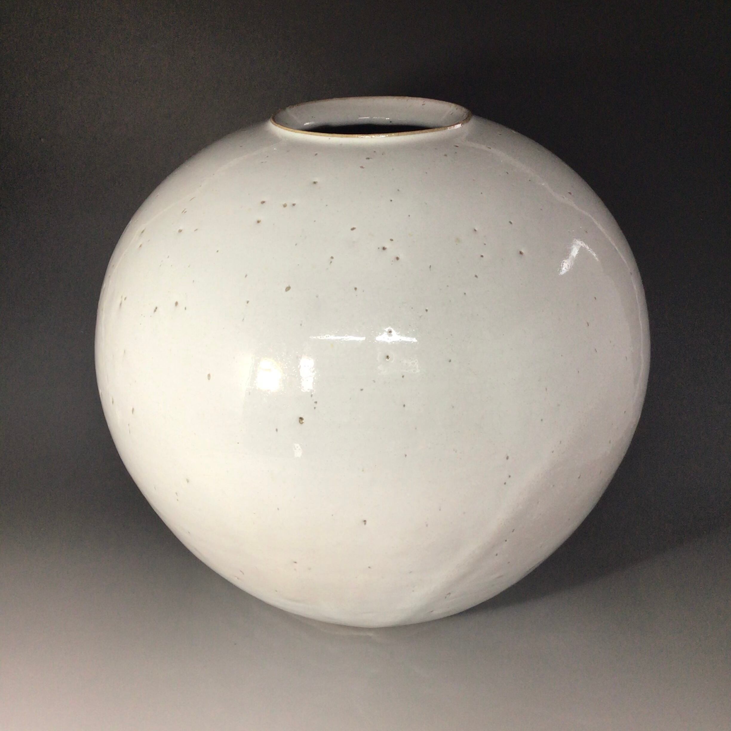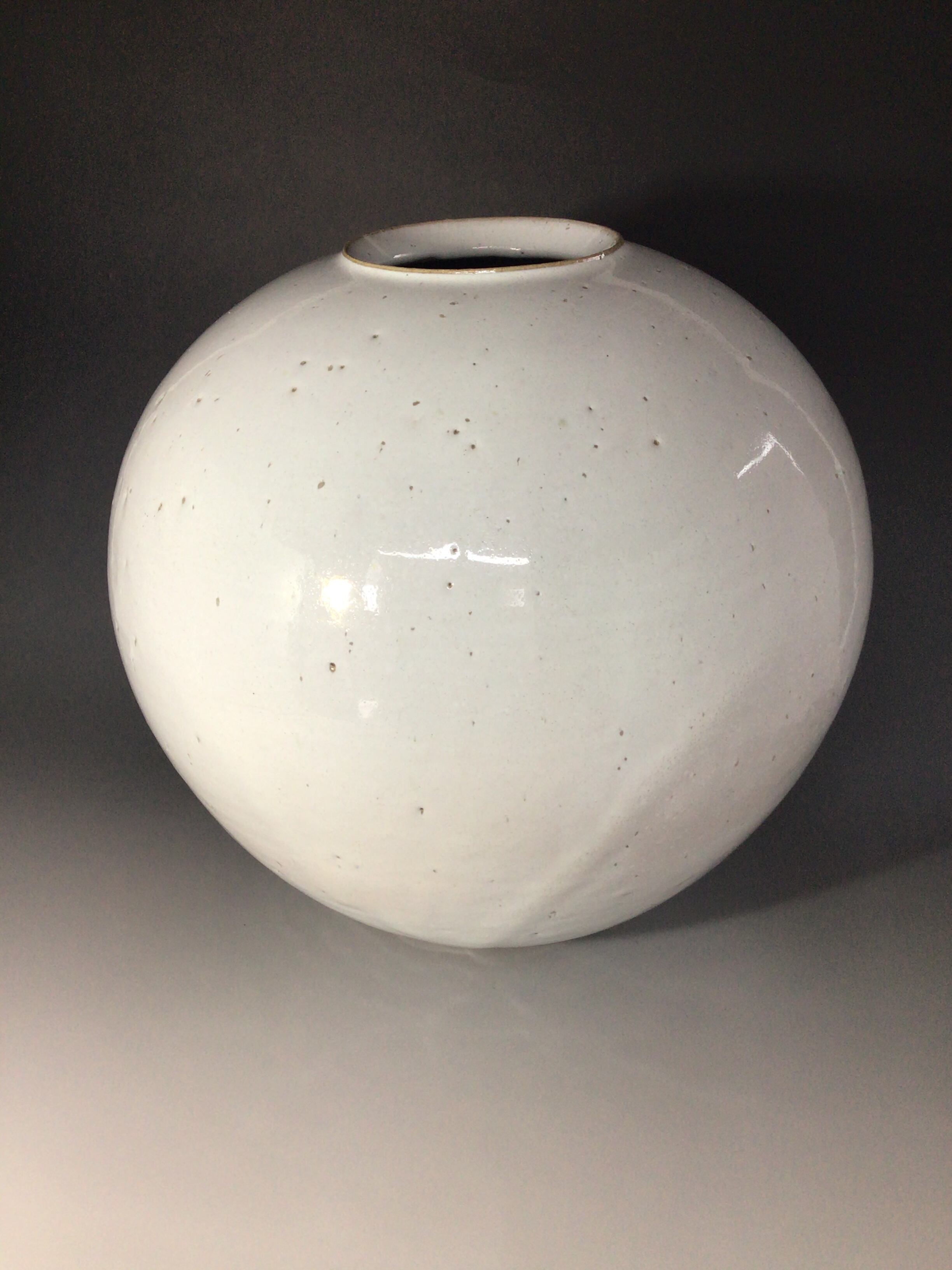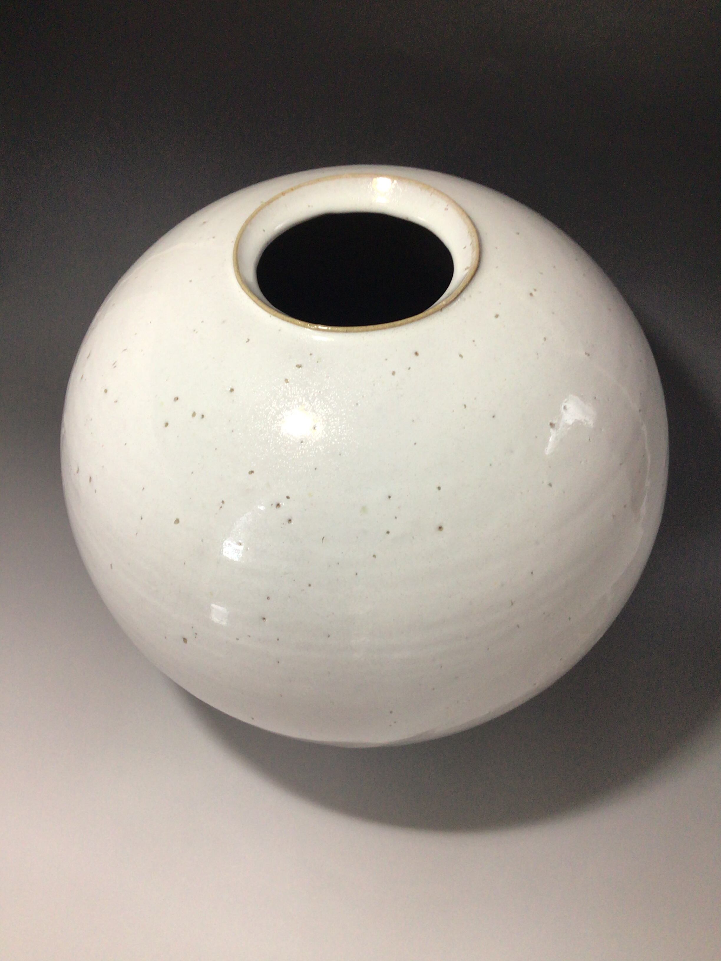 すっきりとした白萩釉と張りの有る形が美しい1点物の会いたい萩焼「一期一会」の作品です。土に小砂を多く混ぜる事により、成型は難易度が上がりますが焼成時に砂が溶け、結晶の様相を呈しその景色が大変美しく見えます。白萩と小砂の流れを見て戴きたい作品です。