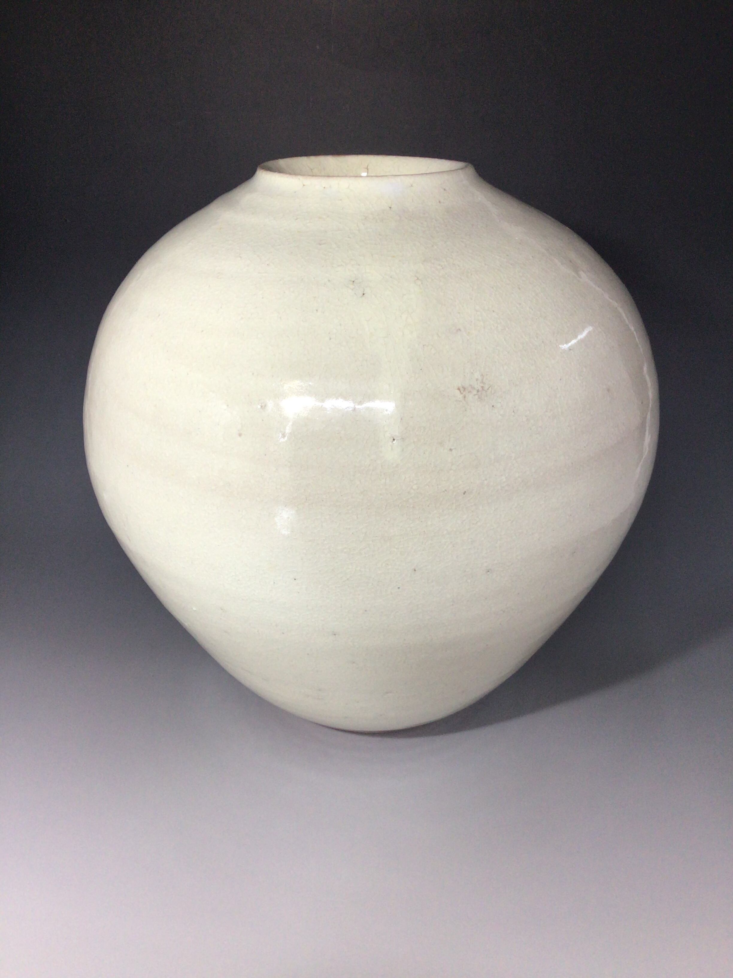口が小さく、花の留まりも良く活けやすい大壺花入れです。釉薬の流れも味わい深い作品です。