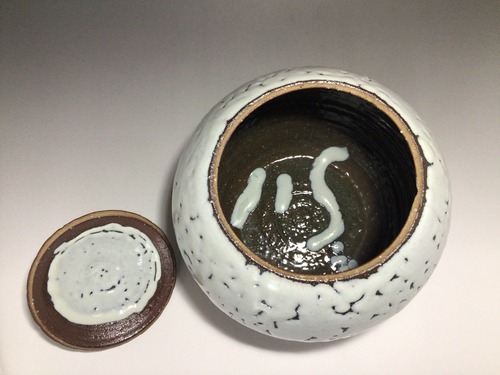 登り窯焼成による1点物の会いたい萩焼「一期一会」の作品です。白萩の縮れ具合が美しい作品です。サイズは大振りですので、置水指としてお使い頂けましたら縮れ釉の美しさと水指の存在感が増すと思います。