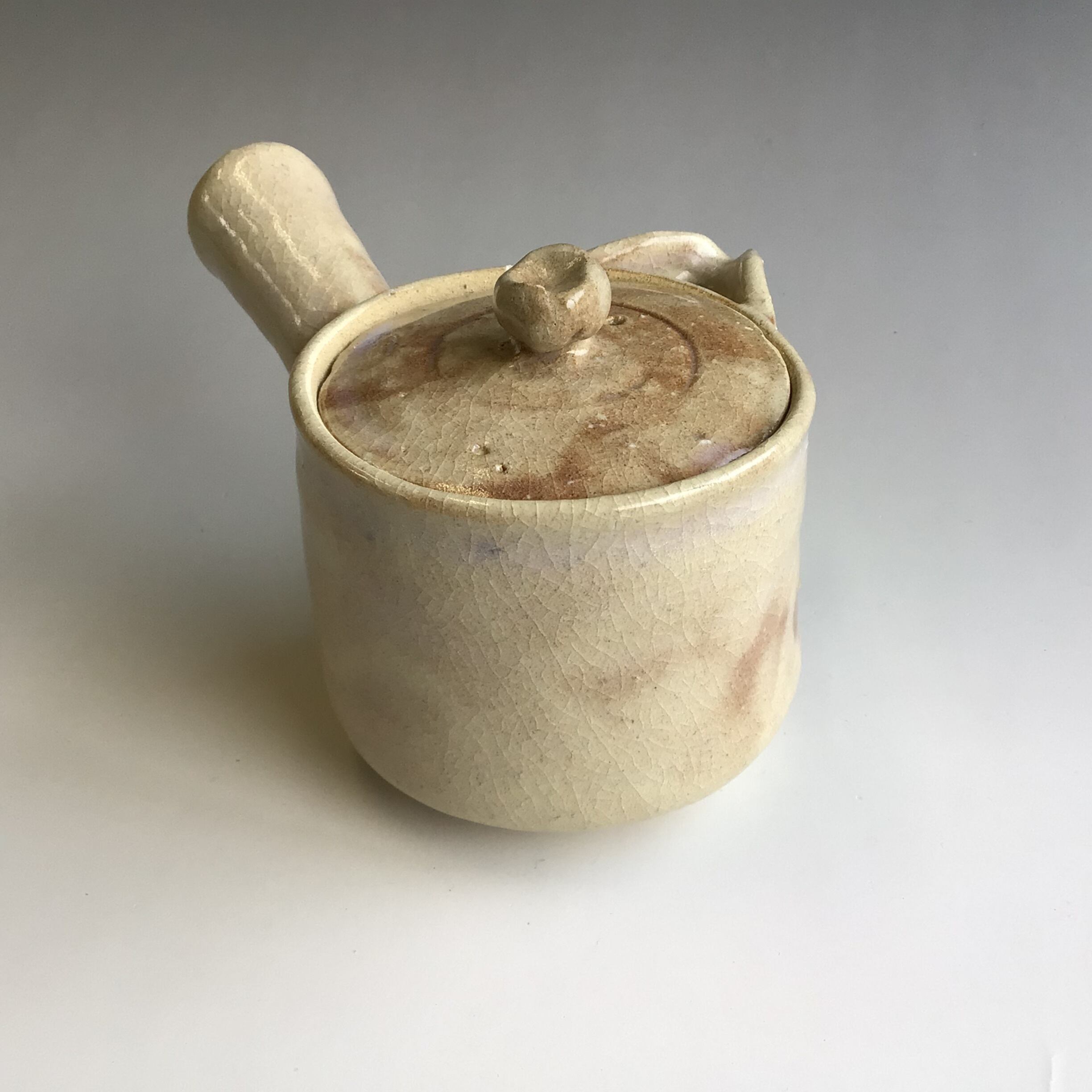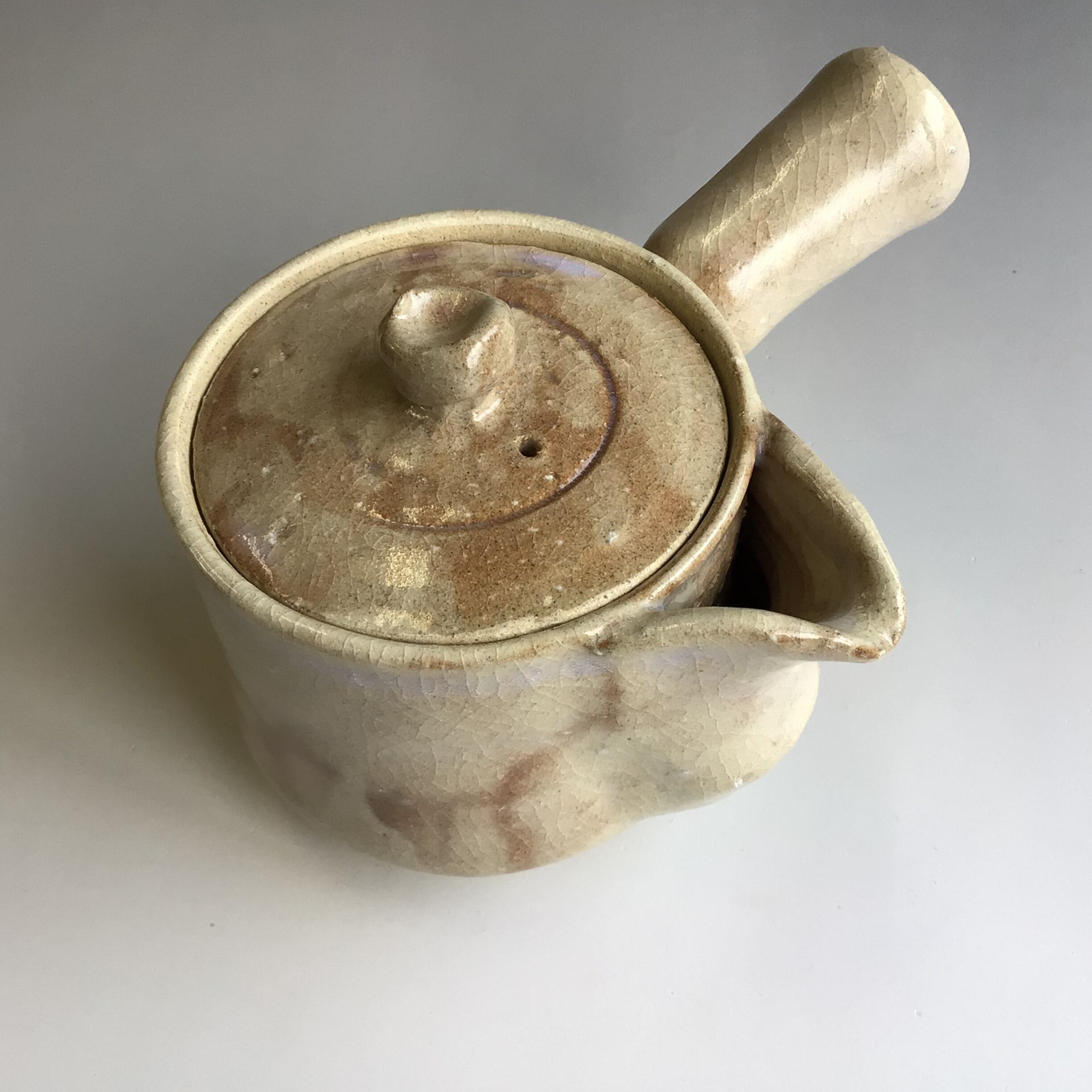 色の美しい、日常に彩りを与えてくれる買いたい萩焼作品です。赤土と白土のグラデーションが見所です。急須でゆっくりとお茶を楽しんで頂けますと幸いです。烏口(からすぐち)は萩焼の伝統的な形です。容量は約330㎖です。
