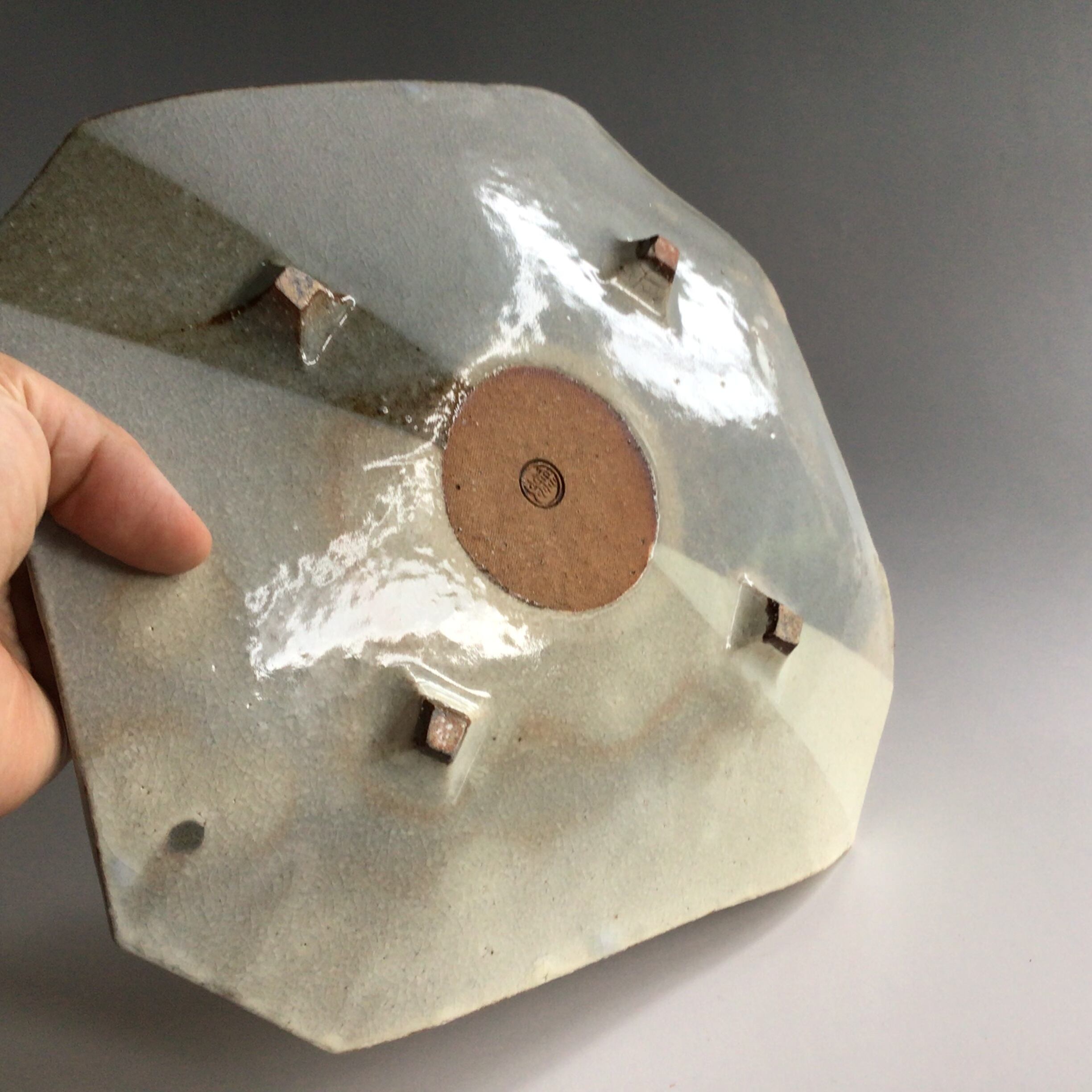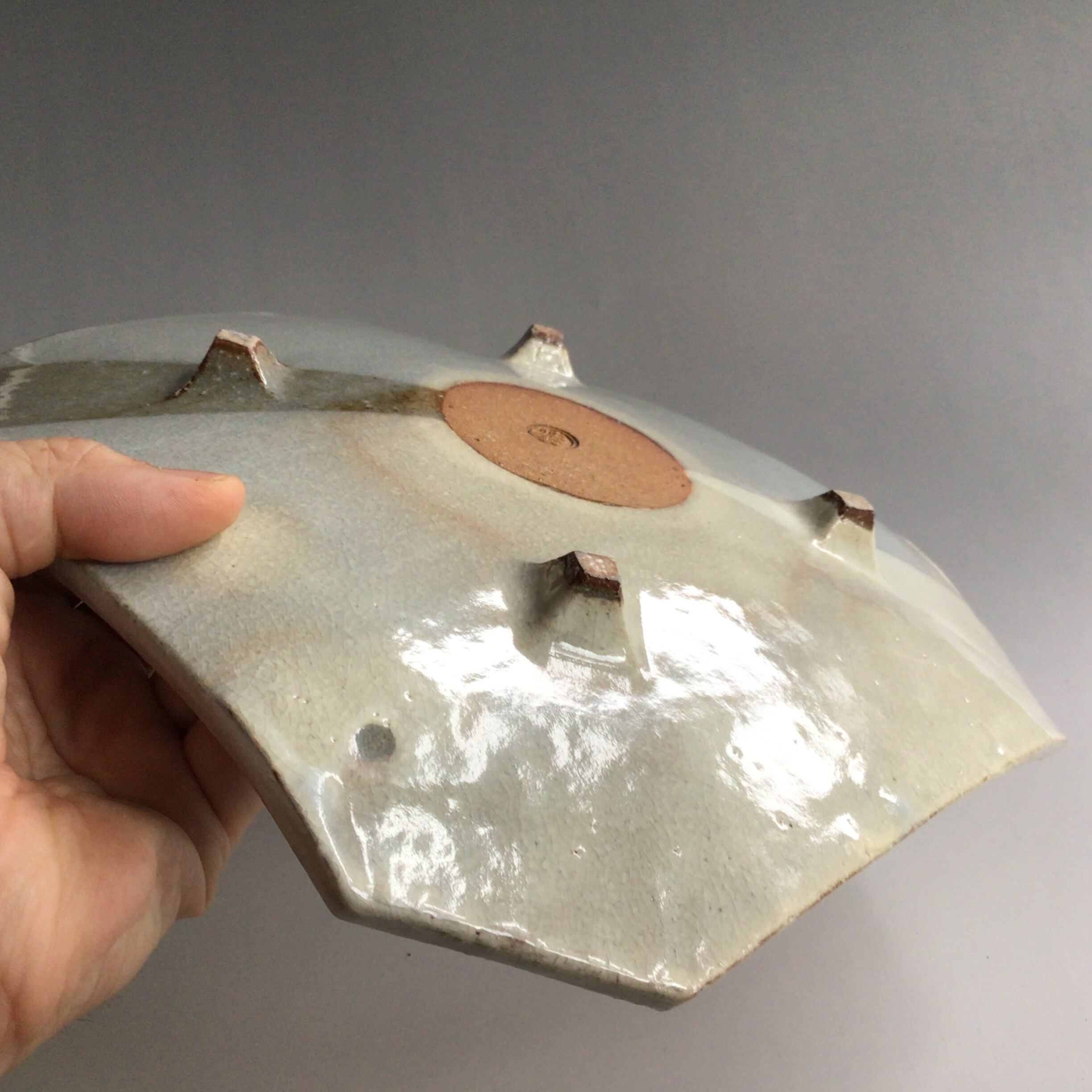 形も色も美しい8寸サイズの角皿です。掛け分け装飾がすっきりとした形と風合いがマッチしております。菓子器や料理の器など色々なお使い方で楽しんで頂きたい作品です。